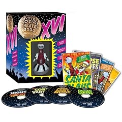 Featuring the features THE CORPSE VANISHES, WARRIOR OF THE LOST WORLD, SANTA CLAUS, NIGHT OF THE BLOOD BEAST along with a chapter of RADAR MEN FROM THE MOON which featured Commander Cody aka Rocket Man. You get a Tom Servo toy, which is pretty cool. And extras? Here ya go: